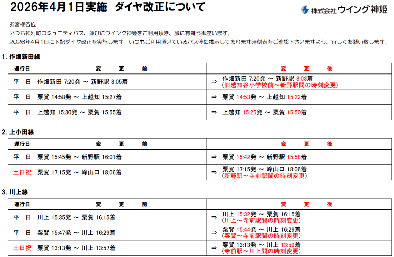 【粟賀】2026年4月1日ダイヤ改正について